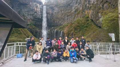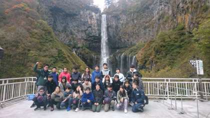 壮大な滝の流れ、水音、岩肌、冷たい空気を全身で味わっています。