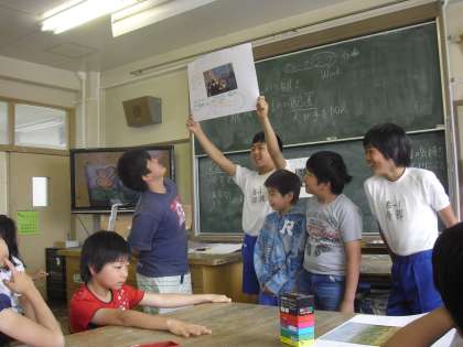 作者の気持ち、どのように描かれているのか、何について描かれているのかなど話し合いました。最後グループごとに、発表を行いました。絵を売るセールスマンになったつもりで絵画の良さや魅力を紹介し合いました。