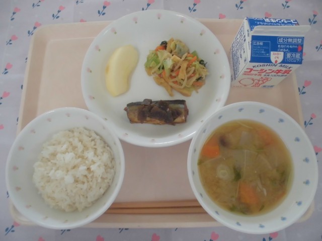 令和7年10月28日(火)【献立】ごはん飲用牛乳秋刀魚の松前煮カリカリ油揚げとキ...