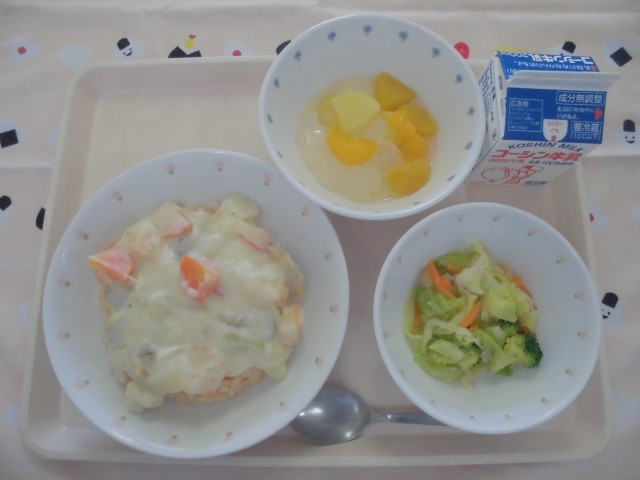 令和8年1月31日(土)【献立】えびとあさりのクリームライス飲用牛乳ひよこ豆のサ...
