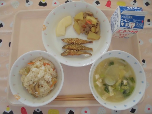 令和8年2月3日(火)【献立】大豆入り五目ごはん飲用牛乳わかさぎのごまがらめじゃ...