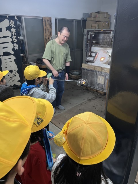 お昼を食べた後は、大観覧に乗り、高いところから江戸川区を見ました。海がよく見えました。午後は篠原風鈴本舗でガラス細工や絵付けについて学びました。見学を受け入れてくださった皆様に感謝申し上げます。
