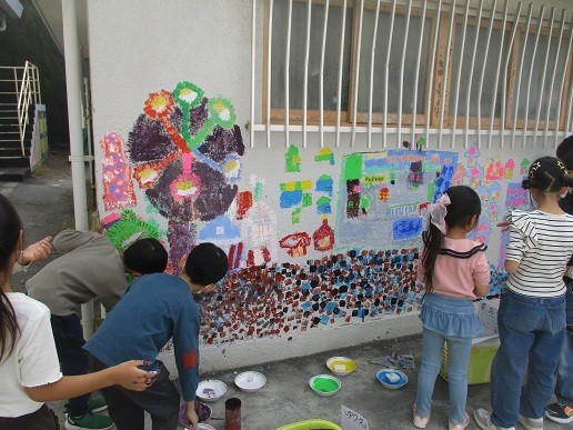 いいえ。学習成果発表会の2年生の作品、「スタンプタウン」です。今日から学習成果発表会に向けての特別時程になります。各学年が一生懸命取り組む様子を伝えていきます。