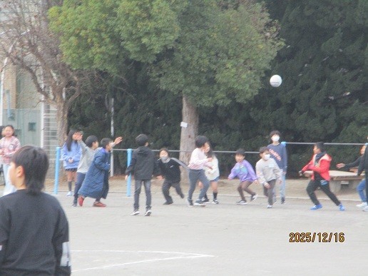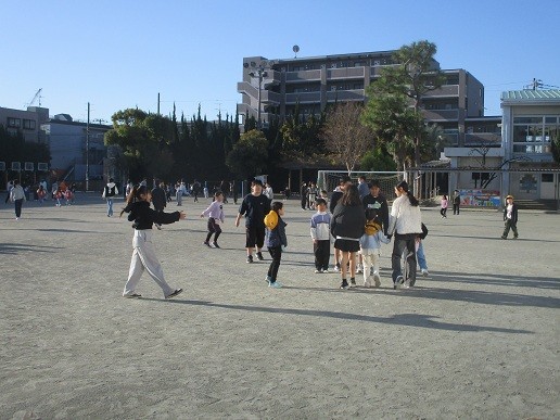 今週は久し振りのたてわり班遊びの週でした。朝、1,6年、3,5年、2,4年がそれぞれペアで遊びました。長縄跳びに鬼ごっこ、ドッチボールと短い時間ですが、上学年のリードで子供たちは思い思いに楽しく遊びました。冬のだるまさんが転んだ・・・ちょっと寒くない?