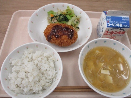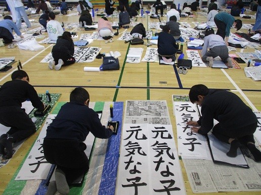 席書会は体育館で3年生と4年生が実施しました。「お正月」は3年生、「元気な子」は4年生です。字の大きさや全体のバランスに注意して、丁寧に集中して取り組んでいました。給食は今年もおみくじコロッケです。コロッケの中にチーズが入っていると「けがや病気をしない健康な1年」(チーズはカルシウムたっぷり)たこが入っていると「幸せな1年」(タコを漢字で書き替えると「多幸」)ウインナーが入っていると「勝負に勝つ1年」(ウインナーはwinner)という意味です。クラスに一つだけ、全部入りの大当たりが入っています。楽しみながら食べてほしいと思います。検食用はもちろん全部入りです!