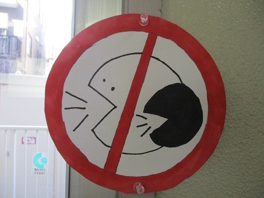 昼休みは暖かい日差しの下、元気よく子供たちは遊んでいました。3枚目の写真は、5年生が図工の時間に作った看板です。校内のところどころに掲示された看板はどれもなかなかよいできで。思わず、じっくりと意味を考えてしまいます。