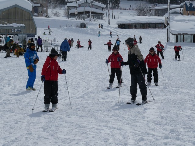 それぞれのグループ(1グループ約10名)でスキーの基礎を学びました。昼ご飯はスキー場でカレーライスです。子供たちは、たくさん運動してお腹が空いていたようです。これから午後の部です。