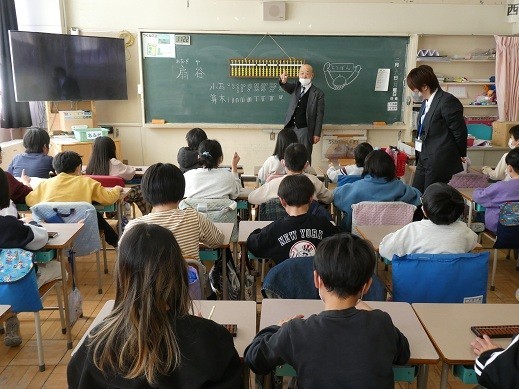 算数の時間、3年生には、近隣のそろばん教室から今年も先生方が教えに来てくださいました。数字の置き方などを丁寧に教えていただき、そろばんに慣れ親しんでいました。独特の緊張感とそろばんのパチパチという音が心地よいですね。