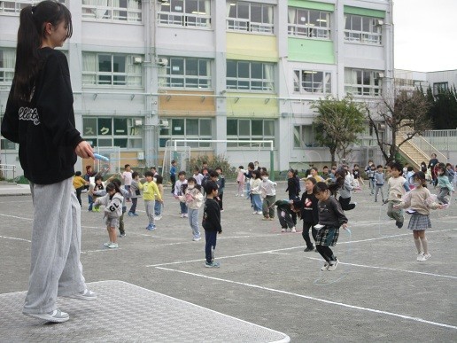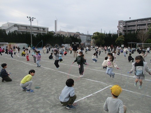 土曜日、日曜日とは一転して寒い1日でした。今日から3学期の縄跳びウイークの始まりです。今日は1~3年生が自分の課題に挑戦しました。体育委員会からは新しいリズム縄跳びがお披露目され、曲に合わせてリズムよく跳ぶ子供たちです。