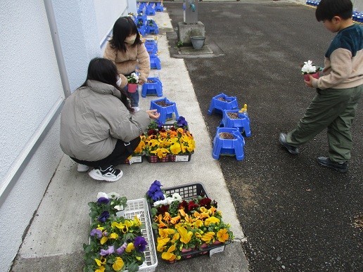 2年生は生活科の時間、パンジーの植え付けをしました。入学式にはしっかり根付いて、大きな花を咲かせているといいですね。