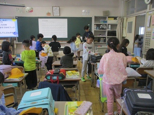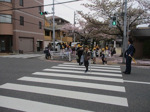 そろそろ葉桜に変わろうとしているさくら公園のサクラをバックに、子供たちが登校してきます。旗振りの担当の方に元気よく挨拶をしていました。1年生は初めて教室に入ります。靴箱の使い方や朝の準備を6年生が優しく手伝っていました。6年生はこの後、教科書を各学級に届けたり、体育館の片付けをしたり・・・毎年の光景ですが、最上級生の自覚ある姿がとても立派です。