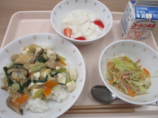 今日の給食は、豆腐とエビのうま煮丼、中華サラダ、イチゴ杏仁、牛乳でした。1年生もとてもよく食べていました。2枚目は6年生の理科の時間です。燃焼の学習にあたって、マッチやライターでろうそくに火を点けてみました。マッチを擦る経験などおそらく初めてのことでしょう。おっかなびっくり慎重に活動していました。2日続けて気持ちの良い青空の下、休み時間に子供たちは元気よく遊んでいました。
