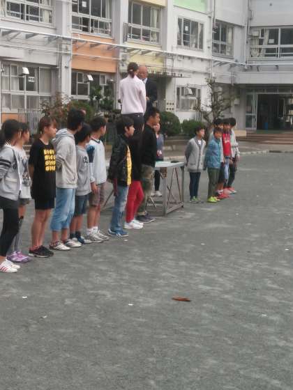 全校朝会「チャレンジザドリーム」5年生3日間の職場体験です!地域の方々ご協力に感謝です。6年体育大会表彰です!