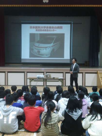 6年心配蘇生法「命の学習でしす」国士舘大学から先生と学生が来てくださいました☆