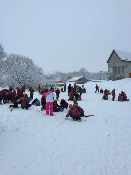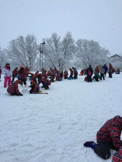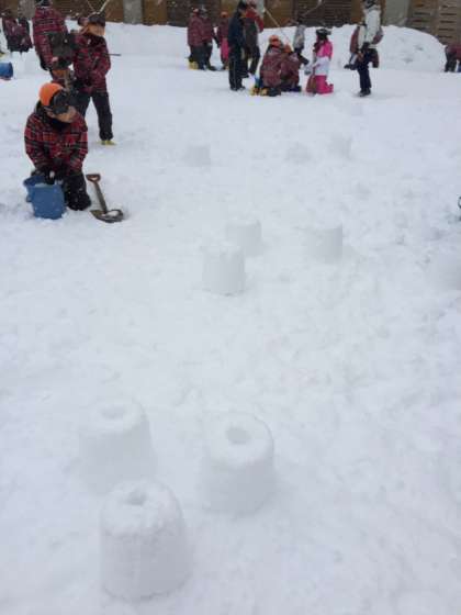 みんなで協力して、雪の灯籠を作っています!暗くなったら、灯籠に火を灯します。綺麗な灯籠になるかな?楽しみです。