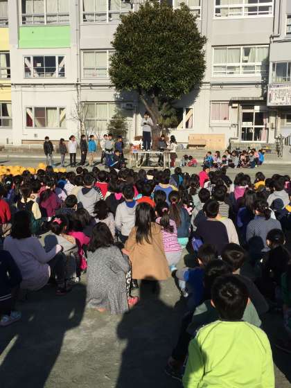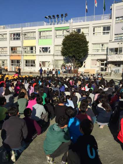 今日の集会は、各学年の展覧会の作品を紹介する集会でした。