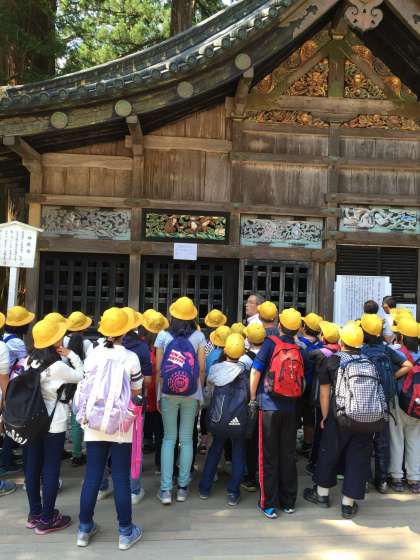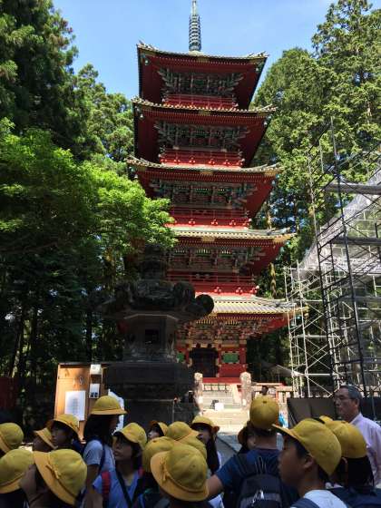 4日目最終日は東照宮に行きました。みんなが見たかった「三猿」を生で見ました。しかし、塗り直し作業中のためレプリカでしたが子供達は嬉しそうでした‼