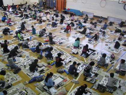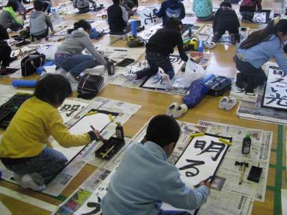 会場の体育館はとても寒かったのですが、子供たちは少しでも整えて字を書こうと集中してがんばっていました。