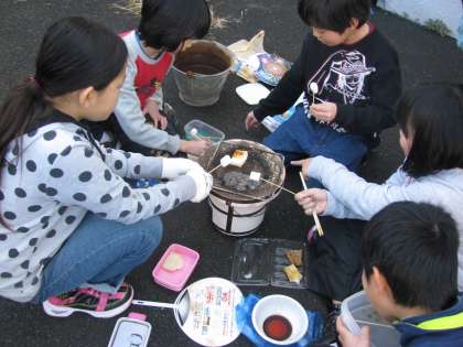 なかなか木炭に火がつかず苦労しましたが、「七輪で焼くとおもちがおいしい!」と昔の道具ならではのよさを体験することができたようです。