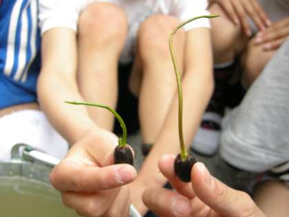 地域の方から、貴重なはすの種をいただき、5年生で育て始めました。はすは池などで育ち、成長すると赤いきれいな花が咲くそうです。これからどのように成長していくのかとても楽しみです!