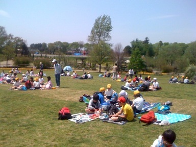 青空の下で、お家で作ってもらったお弁当やおかしを広げ、お昼もにこにこ顔で楽しみました。食事が終わるとしっかりとゴミ拾いをする姿はさすが4年生です。