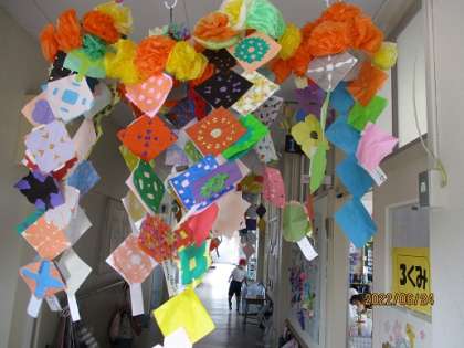 本日、最後の学級(4年3組)がプールに入り、これで全学級の1回目の水泳が終わりました。20日のプール開き以降、一度も中止になることなく順調に進んでいます。1年生の廊下には七夕飾りがありました。アサガオも花を咲かせ始めました。夏はすぐそこまで来ています。