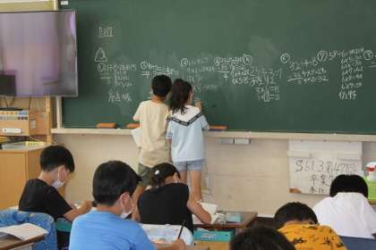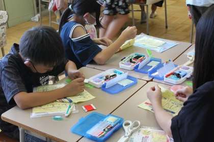 今年は、例年にない早い梅雨明けとなりました。真夏の暑さの中、水泳の学習は順調に進みます。暑いからこそ、涼しい室内では、落ち着いて集中して学習に取り組みます。写真は3年生の算数、5年生の家庭科、6年生の図工の様子です。