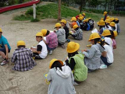5月16日の5校時に、学校のまわりの様子を調べに行きました。1組は『たぶのき公園』から、2組は『天祖神社』から、3組は『さくら公園』から出発して、その3つの目印の間にどんなところがあるかを調べました。普段よく通るところや、そうでないところがあったと思いますが、子どもたちはとても楽しそうに調べていました。1時間という短い時間でしたが、全員けがもなく無事帰ってこられたので、楽しい授業となりました。上の写真は、たぶのき公園でメモをとる子どもたちの様子です。