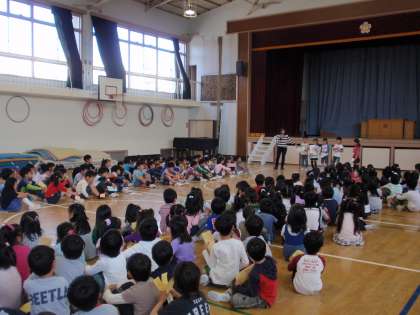 2年生の司会で「がっこうをたんけんしよう!」の会が始まりました。