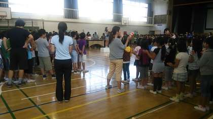 全校児童の、綺麗な歌声とハッピーな心が、リズムにのって体育館を包みこんでいます♪
