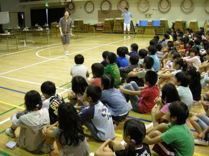 学校公開では、ご来校ありがとうございました。写真は4年生が土曜日に行った水道キャラバンの授業の様子です。水道キャラバン隊のお兄さん、お姉さんが楽しいお話と映像を交えながら、わたしたちのくらしに使われている「水」について詳しく教えてくださいました。水の汚れを固めて沈め、ろかして水をきれいにする実験をするなど、楽しく学習できました。