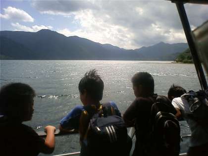 船は風が気持ちいい〜☆ みんなデッキにいるから中はガラガラ…