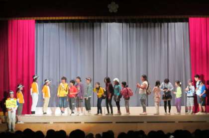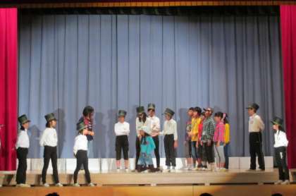 小学校生活最後の学芸会として、6年生は「中学生ライセンス」という劇を行いました。演技力が高まるようにセリフの言い回しを考えたり、身振り手振りをどのようにつけようか考えたり、一人一人が自分の役になりきり頑張りました。6年生の全員の気持ちを一つに劇を作り上げることができました。
