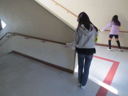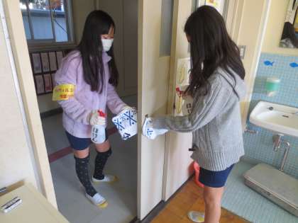 鎌小ウィルスバスターとして、5・6年生の保健委員会の児童が、休み時間に階段の手すりや戸の引手をきれいにしてくれています。