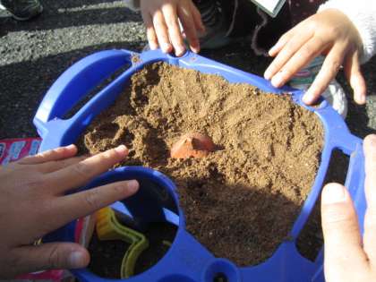 1学期にそだてたアサガオの種と大きさが違い、子どもたちはとてもびっくり!