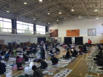 六年生は1、2時間目に体育館で席書会を行いました。