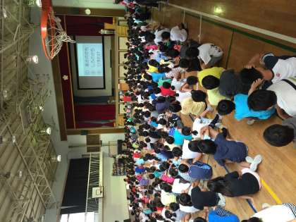 今日の集会は運動会を振り返ろう集会で、運動会に関するクイズをやりました。運動会を思い出しながら、みんなで盛り上がってクイズをやりました!