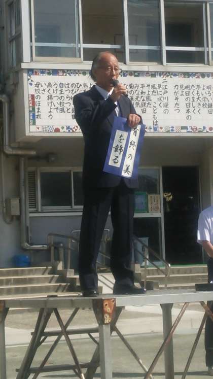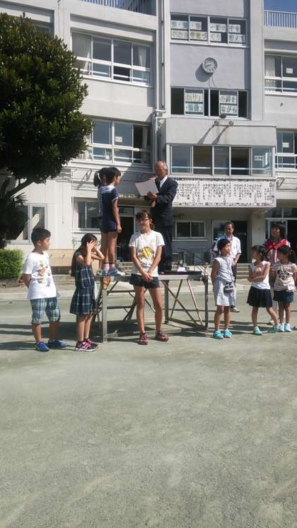 全校朝会「有終の美をかざる!!」一学期ラストスパートです!インラインスケート・よい歯のポスター表彰がありました!!