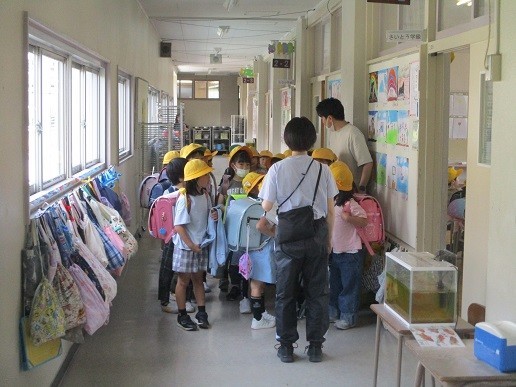 2年生は、来週の学校探検に向けての準備をしていました。当日は1年生のなかよしグループと一緒に行動します。誘導と説明を上手にできるよう頑張っていました。午後は避難訓練でした。今日は一斉下校訓練。台風に備えて一昨年9月、実際に一斉下校を行っています。地域ごとにスムーズに避難していました。