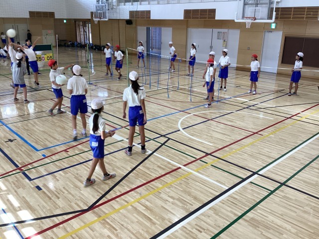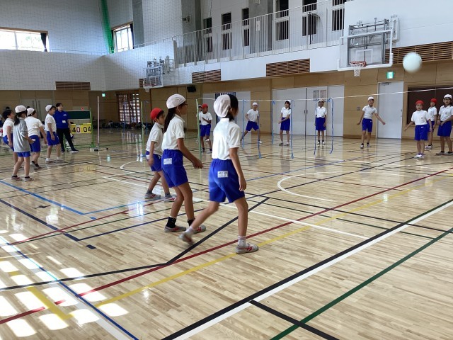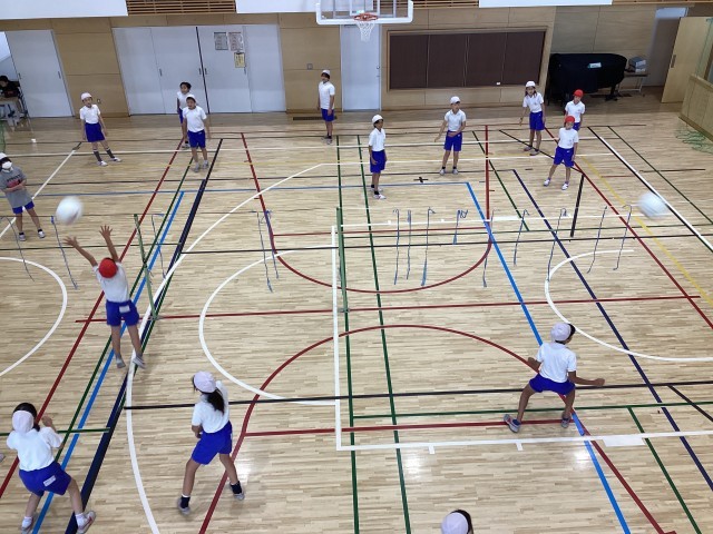 異学年混合でチームを組み、練習・ゲームを行いました。速い球のやり取りにもずいぶん慣れてきました。特にチームの練習ではトスを長く繋げられるようになってきました。