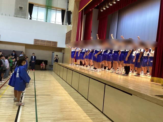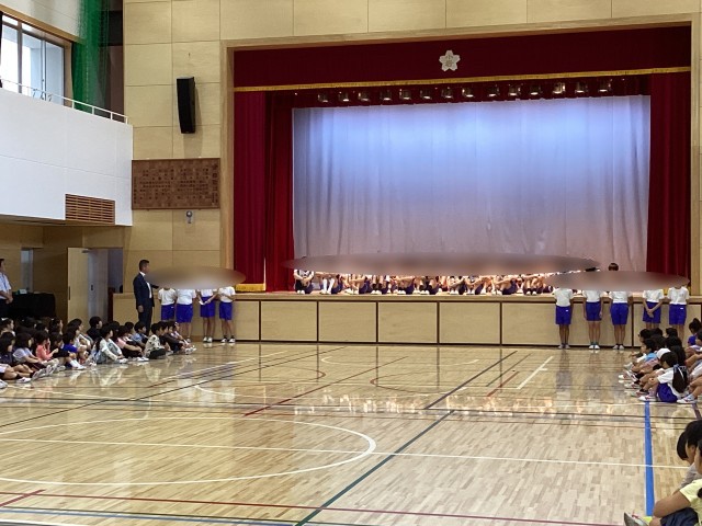 10月14日の全校集会は、16日(木)に江戸川区体育大会に出場する6年生の激励集会を行いました。