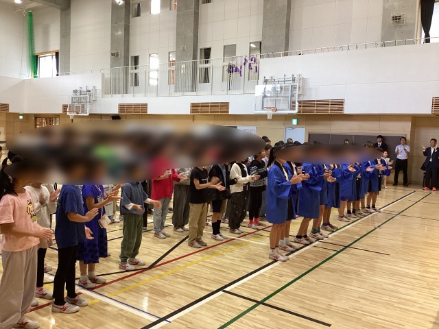 今日の集会では運動委員が司会をしたり、小岩ソーランの法被を着て応援の声を出したりして、6年生を心を込めて全校児童で激励しました。