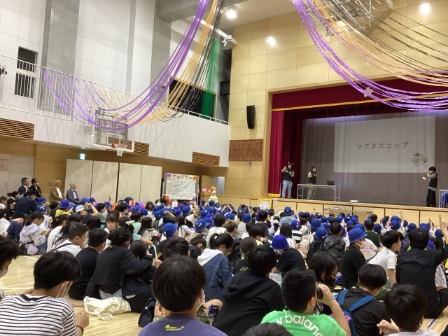 PTAさん、まつり委員さんが風船やテープで飾り付けてくださった素敵な体育館でサイエンスショー、校内で謎解きウオークラリーが行われています。
