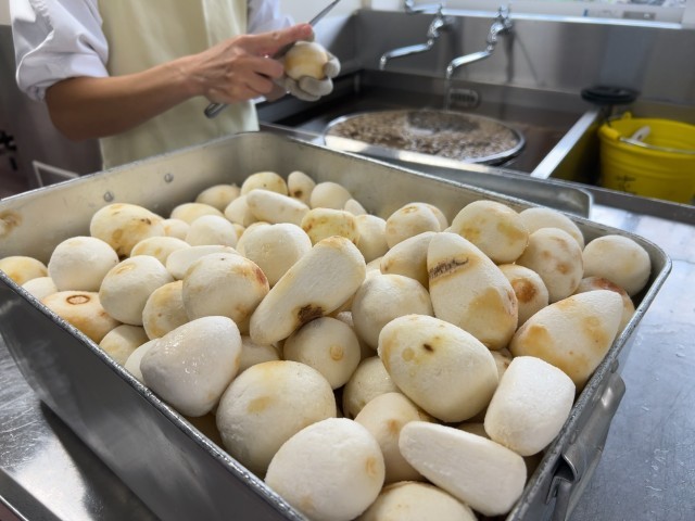 25kgある大量の里芋は、機械を使って皮をむき、食べやすいようにカットしていただきました。