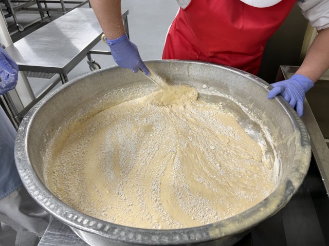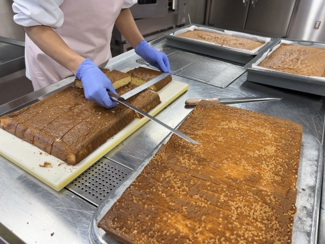 調理さんの手際の良い丁寧な作業で、売り物のようなカステラが出来上がりました。