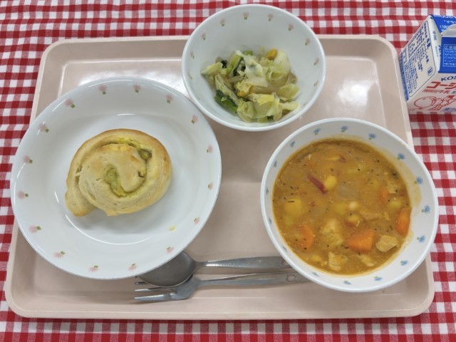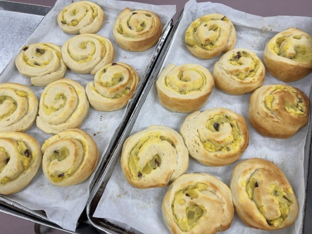 今日は、給食室で手作りしたおさつロールを提供しました!