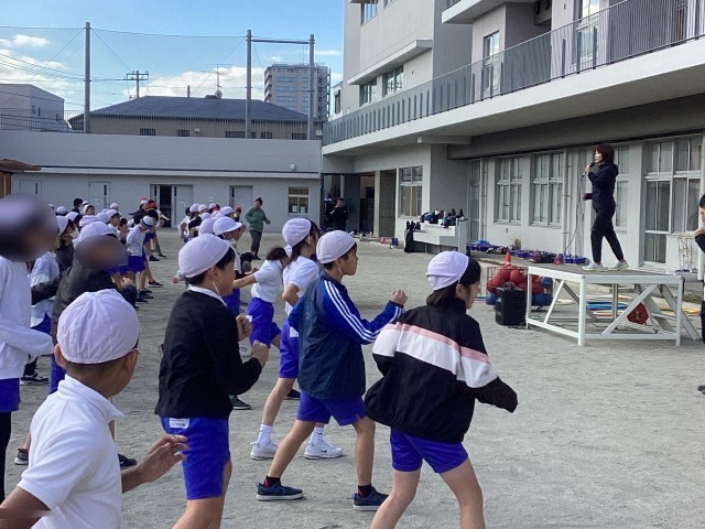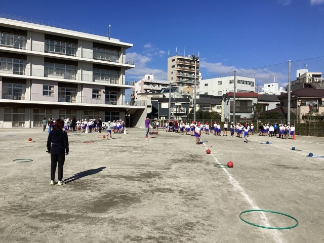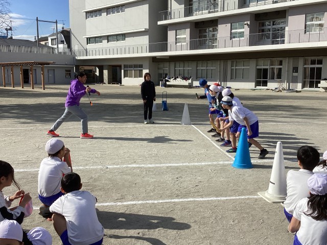12月9日の3・4時間目はゲストティーティーチャーの加納さん、下井さんが4年生と5年生に校庭で授業をしてくださいました。