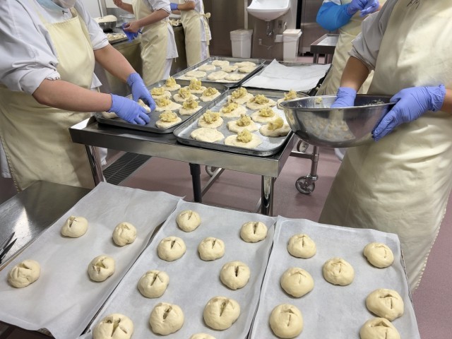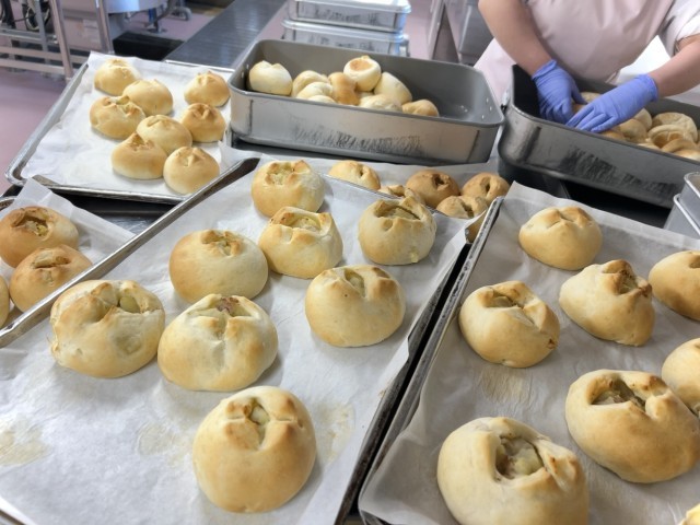 調理さんが一生懸命パン生地をこねてくださったので、ふわふわとしてとても美味しくできあがりました♪