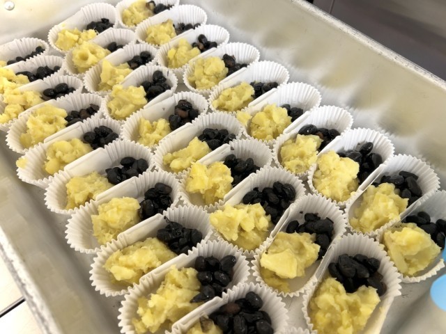 きんとんは、栗ではなくさつまいもを使って作っています。