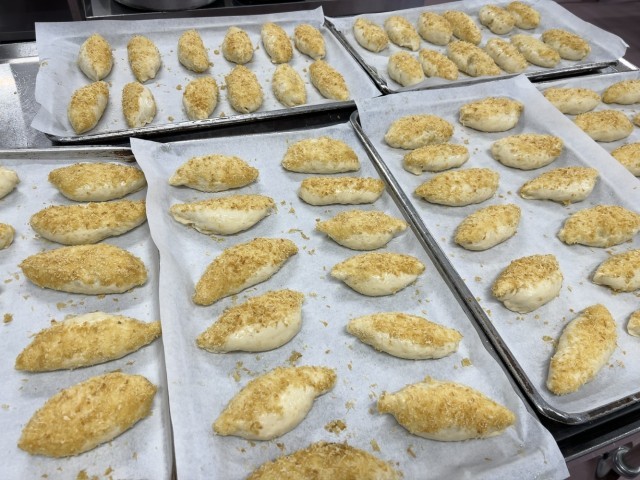 パンの生地に具を包み、パン粉をしっかりとつけて焼き上げていただきました。